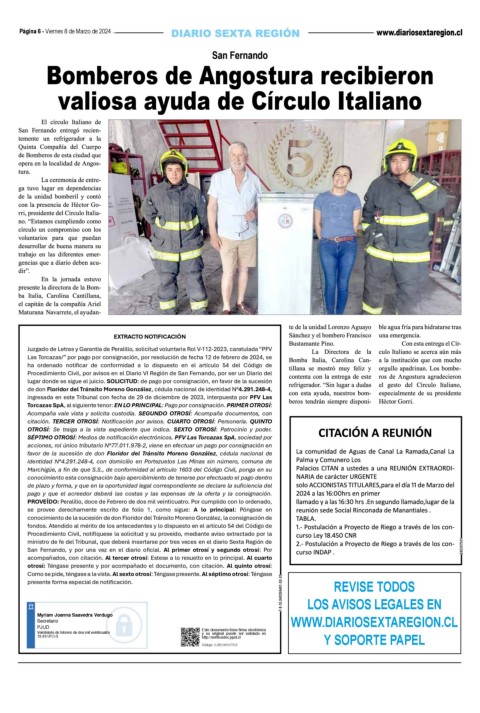 Procedimiento Civil, por avisos en el Diario VI Región de San Fernando, por ser un Diario del