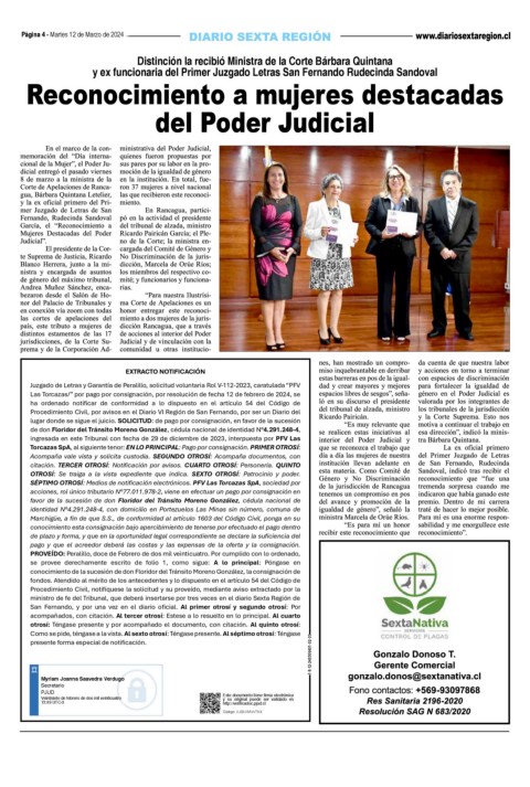 PJUD San Fernando, y por una vez en el diario oficial. Al primer otrosí y segundo otrosí: Por