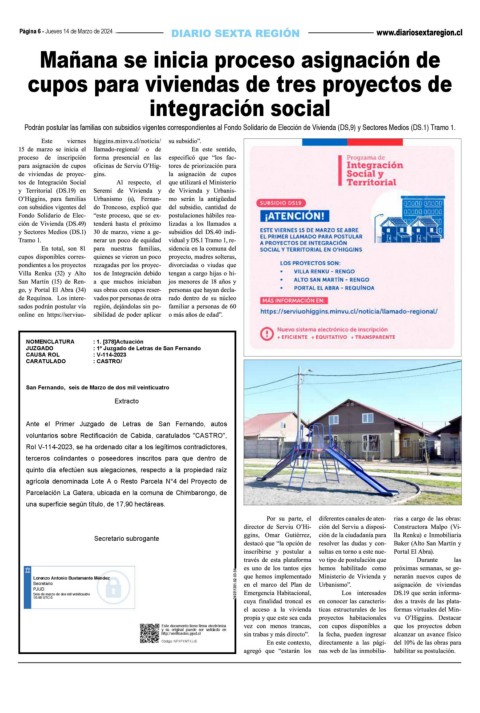 JUZGADO : 1º Juzgado de Letras de San Fernando