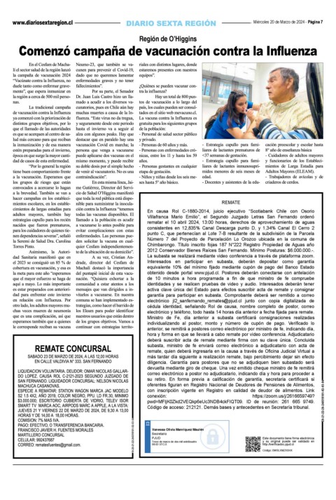 Villafranca Mario Emilio”, el Segundo Juzgado Letras San Fernando ordenó
