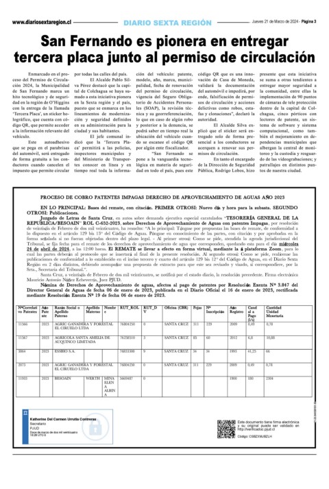 publicaciones de conformidad a lo establecido en el inciso tercero y cuarto del art culo 129 bis 12 del C digo de Aguas, en el Diario Sexta