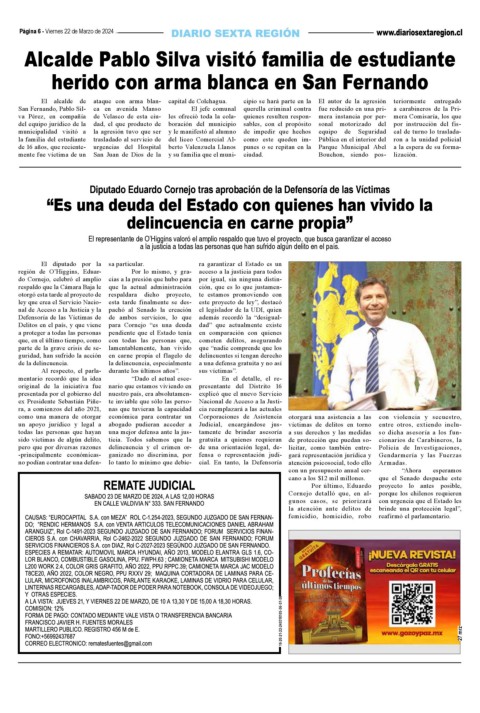 San Fernando, Pablo Sil- ca en avenida Manso El jefe comunal querella criminal contra fue reducido en una pri- a carabineros de la Pri-