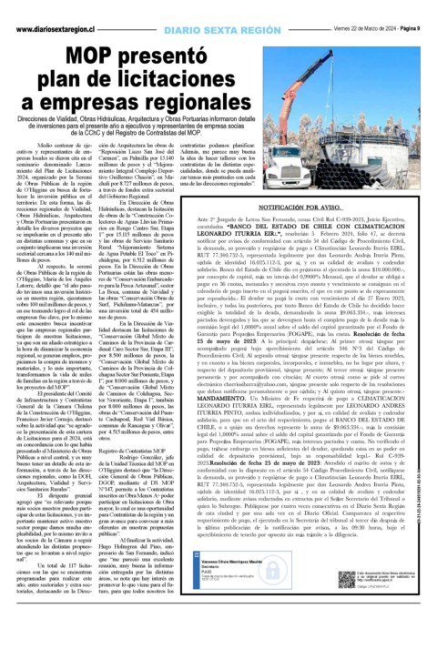 se impulsarán en el presente año 1” por 15.115 millones de pesos L LEONARDO ITURRIA EIRL , resoluci n 5 Febrero 2024, folio 47, se decret