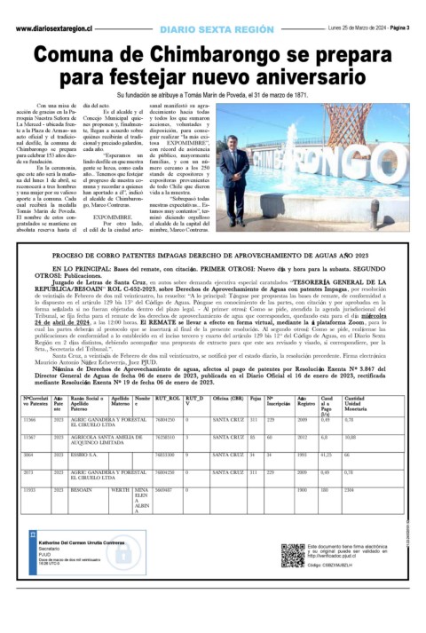 publicaciones de conformidad a lo establecido en el inciso tercero y cuarto del art culo 129 bis 12 del C digo de Aguas, en el Diario Sexta
