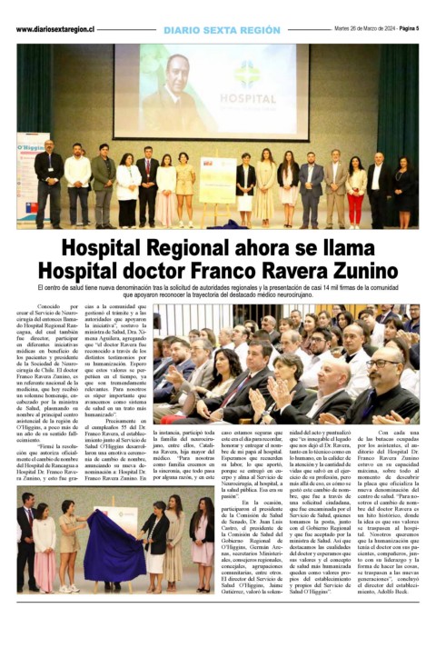 del Hospital de Rancagua a anunciando su nueva de- como familia creemos en su labor, lo que aportó, la atención y la cantidad de estuvo en su capacidad
