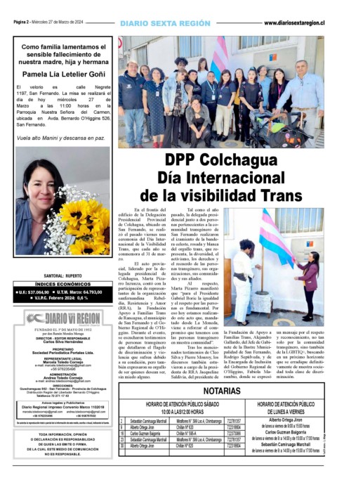 O DECLARACIÓN ES RESPONSABILIDAD 23 Sebastián Camiruaga Marchall Miraflores N° 399 Loc.4, Chimbarongo 722781357 de lunes a viernes de 9: a 14:00 y de 15:00 a 17:00 horas