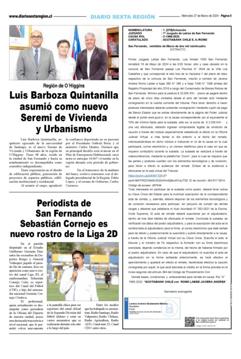 dor nacional Germán Cor- Secretario subrogante 27-28-2-3-240326301-02-03-04