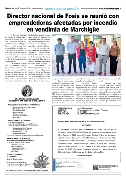 güe, donde se reunió con dos Director participó en la cere- JUZGADO : 1º Juzgado de Letras de San Fernando