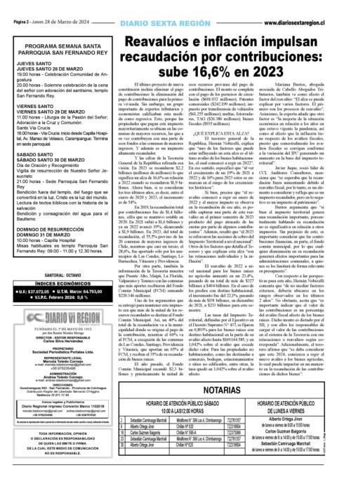 21.00 horas - Sede Parroquia San Fernando a 2022 cuando se recaudaron $1,9 bi- marcan en el rango de los crecimien- dación fuera aumentando debido al