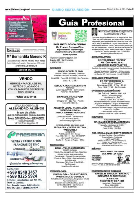 Martes 7 de Mayo de 2024 - Página 11 ESTUDIO JURIDICO JACQUELINE ESTUDIO JURIDICO J A CQUELINE RENCORET M. Y CÍA. RENCORET M. Y CÍA.