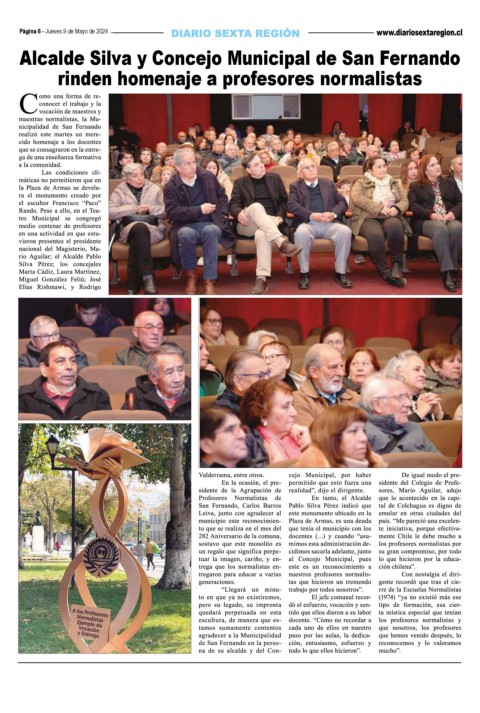 Página 6 - Jueves 9 de Mayo de 2024 Alcalde Silva y Concejo Municipal de San Fernando rinden homenaje a profesores normalistas