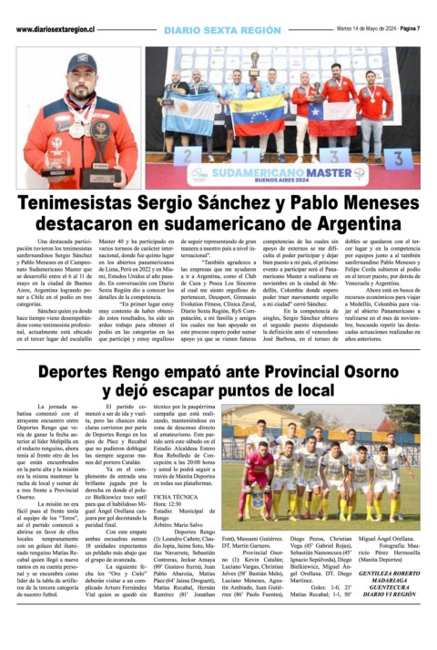Martes 14 de Mayo de 2024 - Página 7 Tenimesistas Sergio Sánchez y Pablo Meneses destacaron en sudamericano de Argentina Deportes Rengo empató ante Provincial Osorno y dejó escapar puntos de local