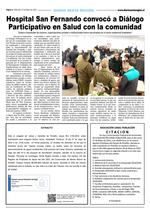 aprovechamiento de aguas consistentes 0.05 acciones del Canal Lihueimo, destinados al