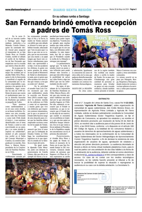 Ante el 1° Juzgado de Letras de Santa Cruz, causa Rol V-22-2023,