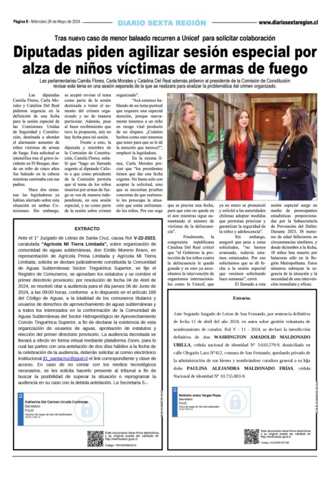 Ante el 1° Juzgado de Letras de Santa Cruz, causa Rol V-22-2023,