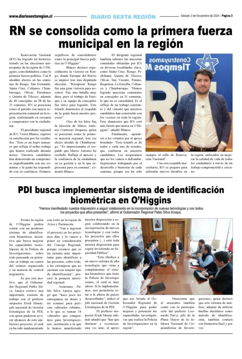 triunfo en las elecciones mu- tica en O’Higgins”. comunales obtenidas por RN