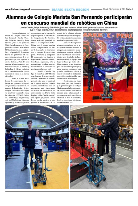 San Fernando Amelia Chan- te Competencia de Robótica. ble el financiamiento que ayude