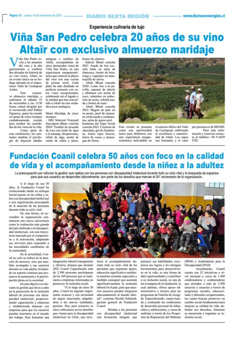 Página 12 - Jueves 14 de Noviembre de 2024 www.diariosextaregion.cl