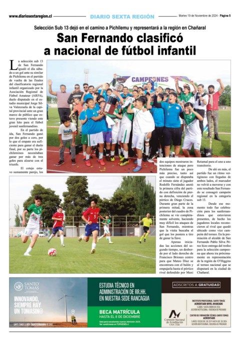 Martes 19 de Noviembre de 2024 - Página 5 Selección Sub 13 dejó en el camino a Pichilemu y representará a la región en Chañaral San Fernando clasificó a nacional de fútbol infantil