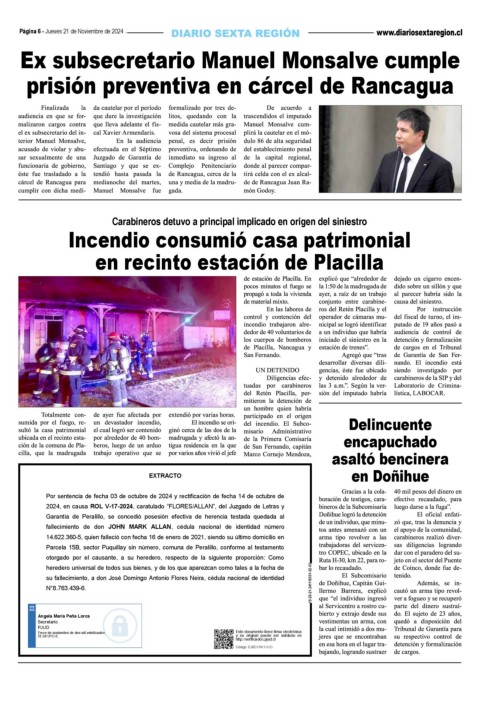 2024, en causa ROL V-17-2024, caratulado “FLORES/ALLAN”, del Juzgado de Letras y