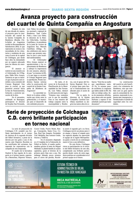 Jueves 28 de Noviembre de 2024 - Página 3 Avanza proyecto para construcción del cuartel de Quinta Compañía en Angostura Serie de proyección de Colchagua C.D. cerró brillante participación en torneo nacional