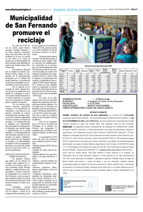 J JUZGADO 5.100 : : 1 Juzgado de Letras de San Fernando 192 678 19 10.058