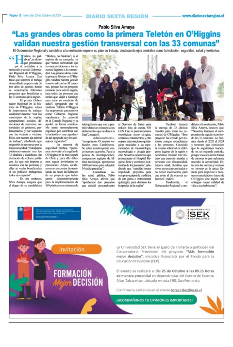 Página 12 - Miércoles 23 de Octubre de 2024 www.diariosextaregion.cl