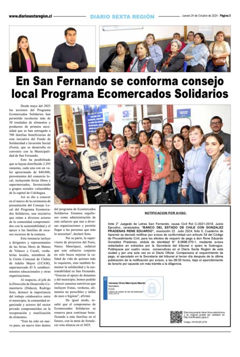 Publíquese por cuatro veces consecutivas en el Diario Sexta Región de esta