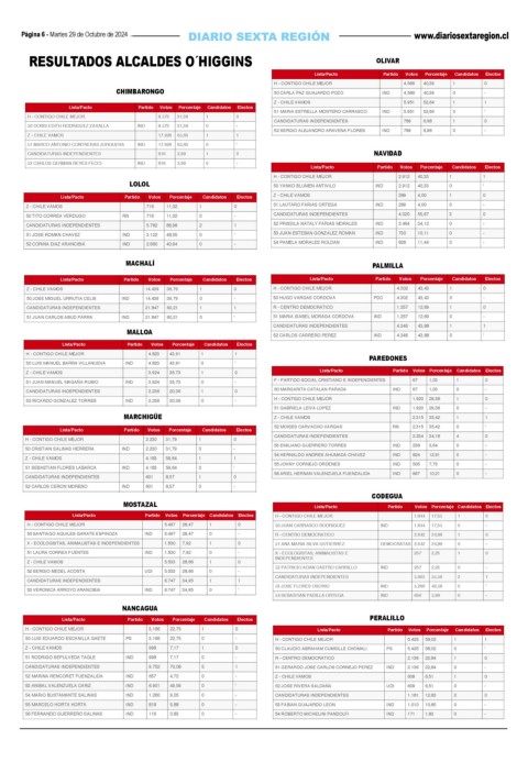 RESULTADOS ALCALDES O´HIGGINS OLIVAR