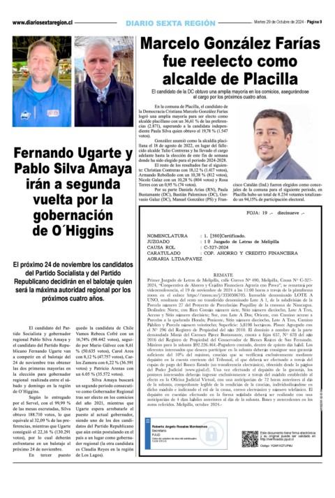 Republicano decidirán en el balotaje quien Primer Juzgado de Letras de Melipilla, calle Correa N 490, Melipilla, Causa N C-327-