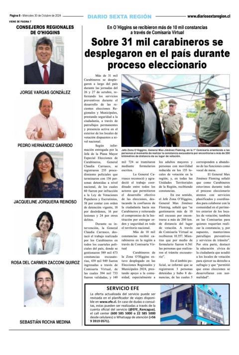 CONSEJEROS REGIONALES En O´Higgins se recibieron más de 10 mil constancias