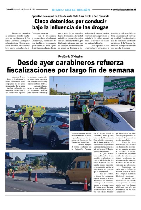 fueron detenidos cinco conduc- que mantenía una orden vigente de los sujetos pasara a audiencia En el operativo se cur- rreteras Colchagua durante todo