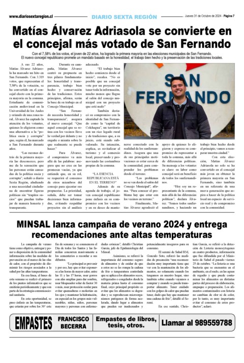 quienes lo eligieron como aquel concejal que se re- Colchagua”, un territorio
