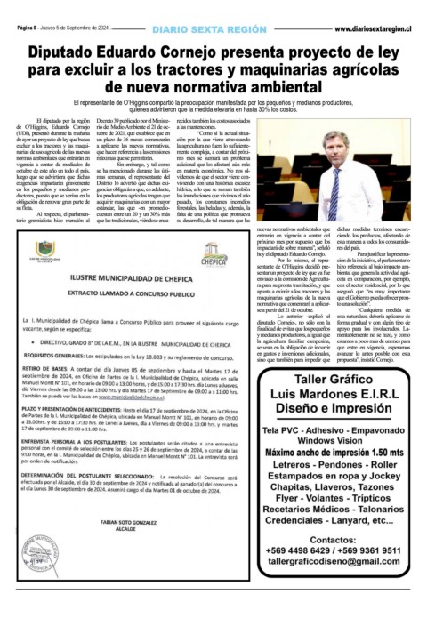 El representante de O’Higgins compartió la preocupación manifestada por los pequeños y medianos productores,