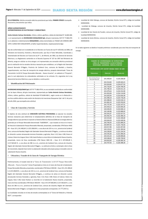 Página 4 - Miércoles 11 de Septiembre de 2024 General Bernardo O’Higgins. La longitud de la línea proyectada corresponde a 10.777,2003 m.