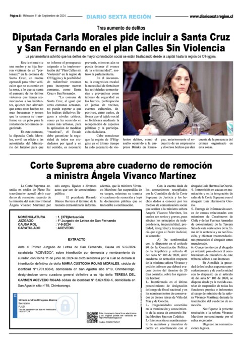 Ante el Primer Juzgado de Letras de San Fernando, Causa rol V-9-2024