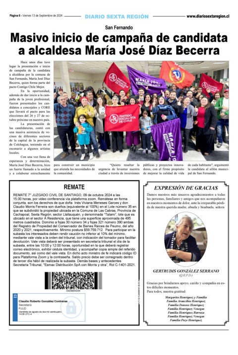 REMATE 7° JUZGADO CIVIL DE SANTIAGO, 09 de octubre 2024 a las Damos nuestros más sinceros agradecimientos a todas