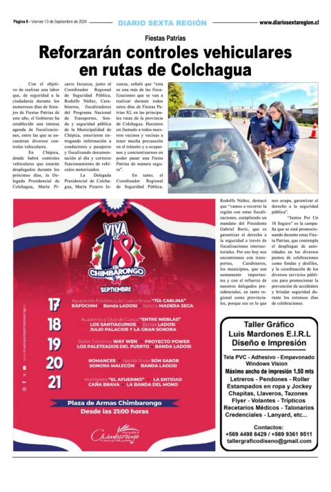 Página 8 - Viernes 13 de Septiembre de 2024 Fiestas Patrias Reforzarán controles vehiculares en rutas de Colchagua