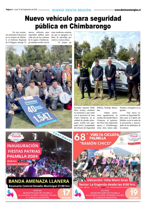 Página 4 - Lunes 16 de Septiembre de 2024 Nuevo vehículo para seguridad pública en Chimbarongo