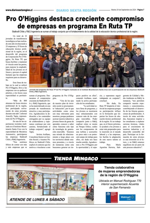 Jornada del programa En Ruta TP de Pro O’Higgins realizada en el Instituto Bicentenario Santa Cruz con la participación de las empresas Statkraft