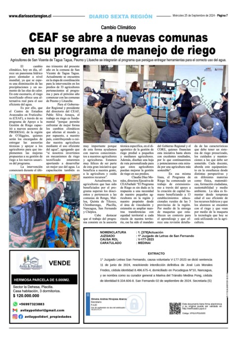 VENDE 1° Juzgado Letras San Fernando, causa voluntaria V-177-2023 se dictó sentencia
