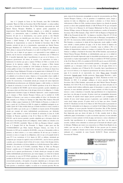 cobrado en los autos rol C-712-2023, caratulados “Banco de Chile con Parraguez Este documento tiene firma electrónica