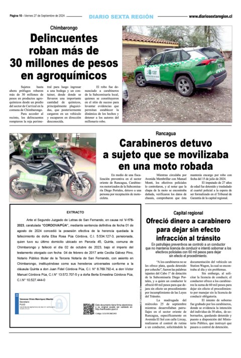 Chimbarongo y falleció el día 02 de octubre de 2023, bajo el imperio del que no mantenía licencia de conducir e intentó sobornar a los