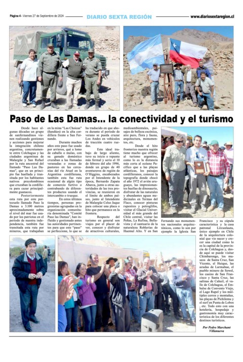 Página 4 - Viernes 27 de Septiembre de 2024 Paso de Las Damas… la conectividad y el turismo