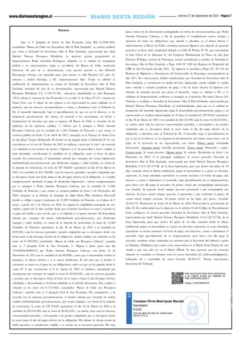 cobrado en los autos rol C-712-2023, caratulados “Banco de Chile con Parraguez Este documento tiene firma electrónica