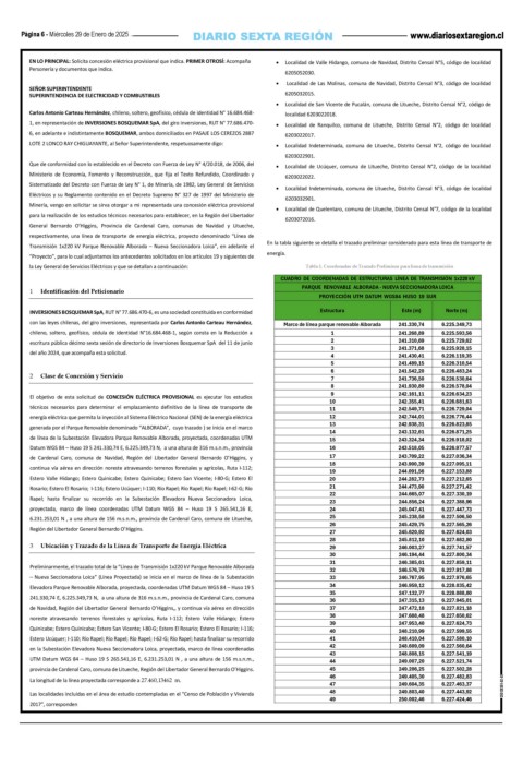 ĐŽŶ ůĂƐ ůĞLJĞƐ ĐŚŝůĞŶĂƐ͕ ĚĞů ŐŝƌŽ ŝŶǀĞƌƐŝŽŶĞƐ͕ ƌĞƉƌĞƐĞŶƚĂĚĂ ƉŽƌ ĂƌůŽƐ ŶƚŽŶŝŽ ĂƌƚĞĂƵ ,ĞƌŶĄŶĚĞnj͕ Marco de línea parque renovable Alborada 241.330,74 6.225.349,73