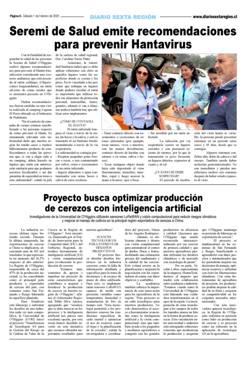 tiendo récords. Durante va, financiada por el Fon- AVANCES Además, se uti- O’Higgins siga siendo exportación de cerezas”.