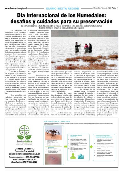 ecosistemas únicos y comple- O’Higgins, humedales como