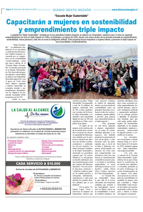 La plataforma “Mujer Sustentable”, fundada por la eco periodista Catalina Droguett, en alianza con Emprediem, expertos hace 13 años en capacitar