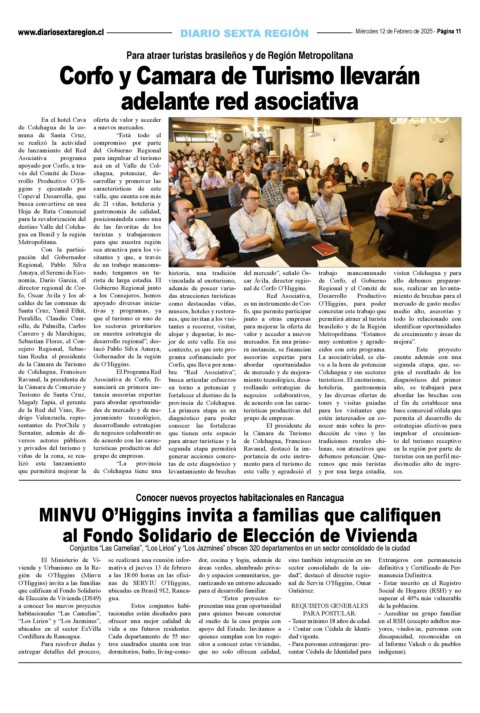 director regional de Cor- Gobierno Regional junto además de poseer varia- nal de Corfo O’Higgins. Regional y el Comité de nos, realizar un levanta-